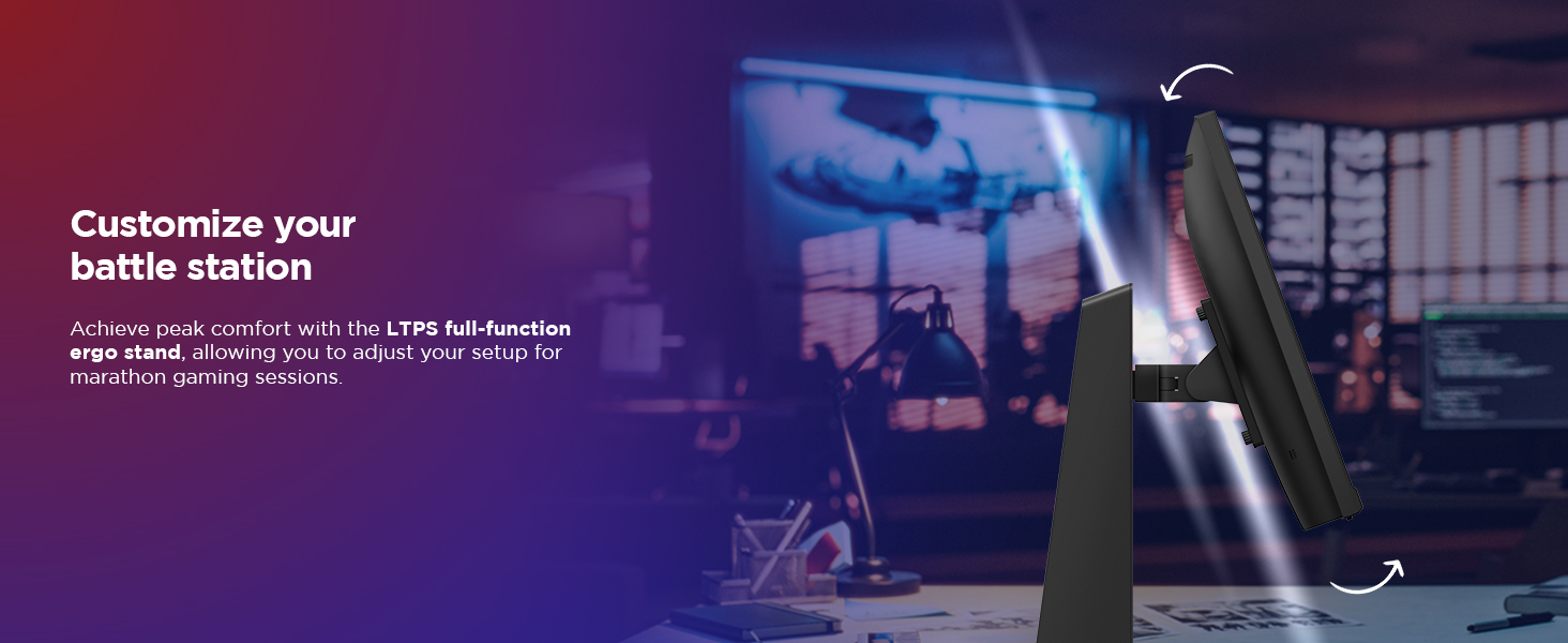 Get the ultimate in comfort with the fully functional LTPS ergo stand, so you can customize your setup for marathon gaming sessions.